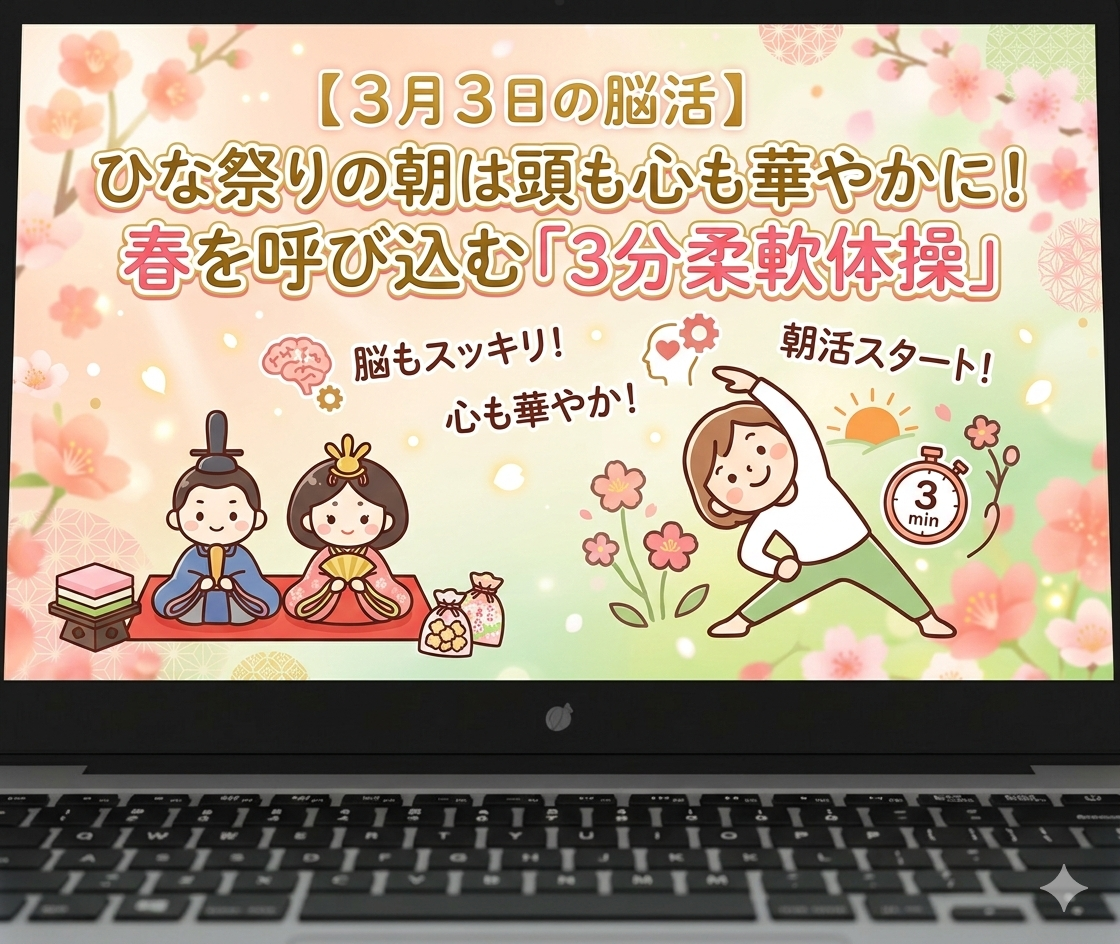 今日は3月3日、「ひな祭り(桃の節句)」です。少しずつ春の気配が近づいてきて、なんだか心もウキウキしてくる季節ですね。火曜日は1週間の仕事や勉強が本格的に軌道に乗る日。始業前に少しだけ脳に「楽しい刺激」を与えて、今日のパフォーマンスをぐんと引き上げていきましょう。
