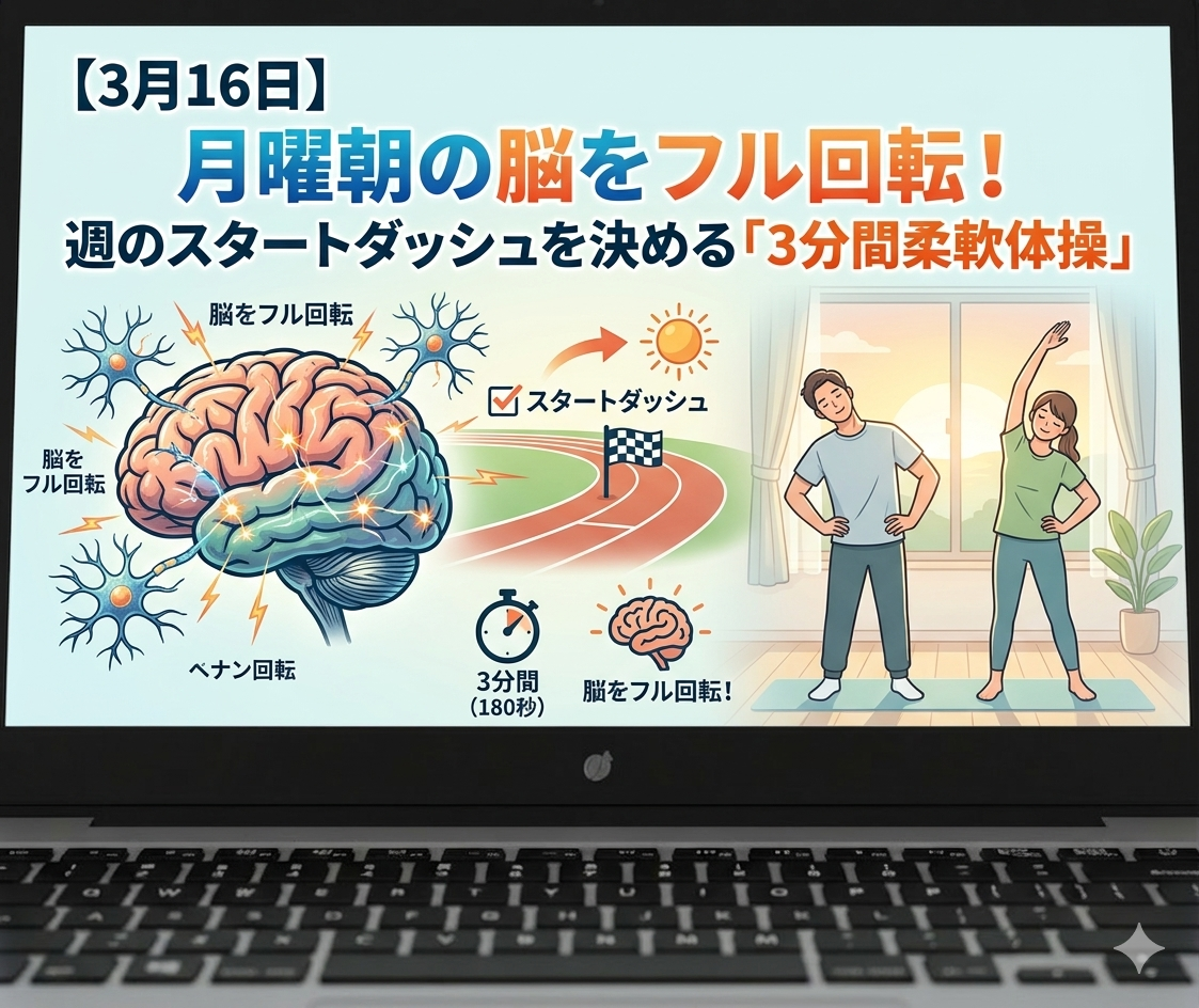 【3月16日】月曜朝の脳をフル回転!週のスタートダッシュを決める「3分間柔軟体操」