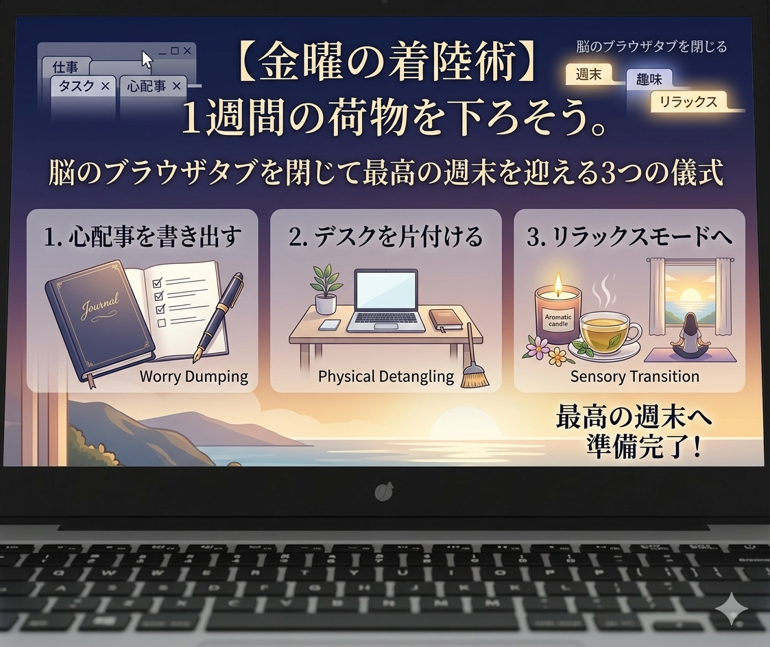 💡 脳のタブを綺麗に閉じる、金曜日の「ソフトランディング」3つの儀式