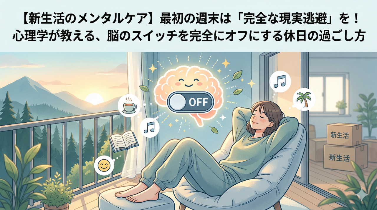 この最初の週末に一番やってはいけないのは、「来週の準備」や「終わらなかった作業」に手をつけてしまうこと。今日は、心理学のアプローチを取り入れて、脳を「平日モード」から「完全な休日モード」へと強制終了させるリセット術をお届けします。