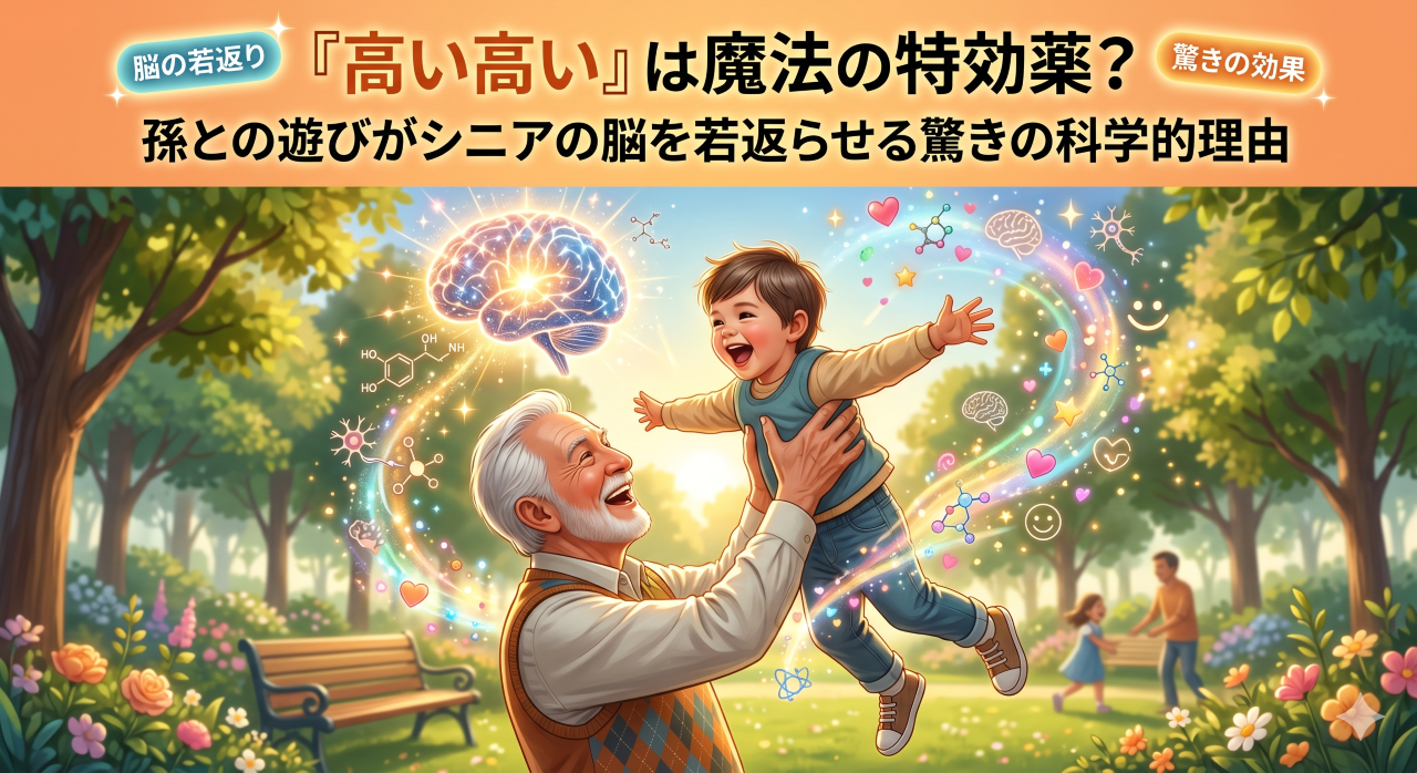 孫世代との遊びは、単なる家族の団らんを超えた「究極のアンチエイジング」です。抱っこや「高い高い」を通じて分泌されるオキシトシンは心を癒やし、予測不能な子供の動きは前頭前野を刺激して判断力を高め、全身を使った遊びは身体的な若々しさを取り戻してくれます。