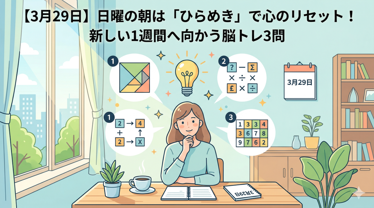 【3月29日】日曜の朝は「ひらめき」で心のリセット!新しい1週間へ向かう脳トレ3問