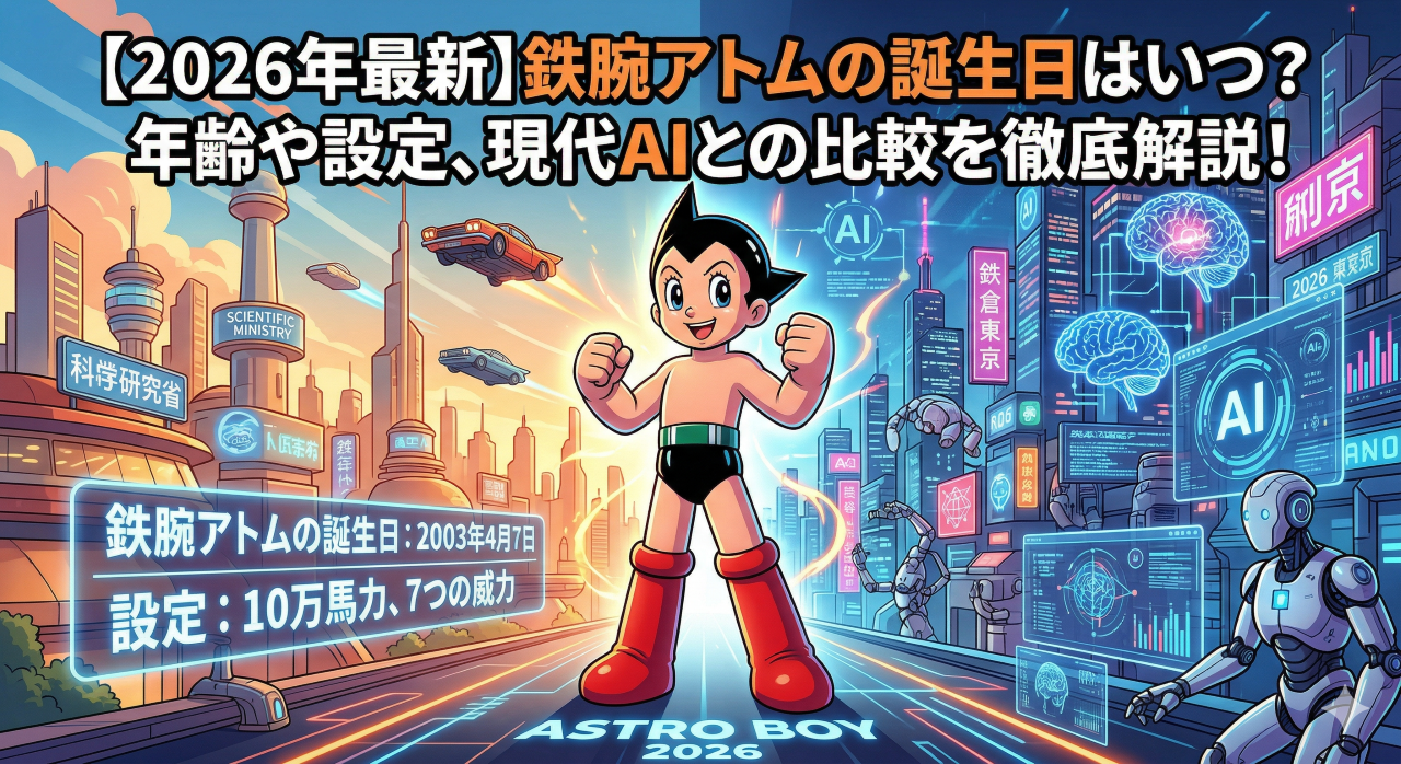 「鉄腕アトムの誕生日っていつだっけ?」「今の年齢は?」そんな疑問にお答えします!本記事では、アトムの誕生日(2003年4月7日)の秘密から、2026年現在の最新AI・ロボット技術との比較、隠された裏設定まで徹底解説します。