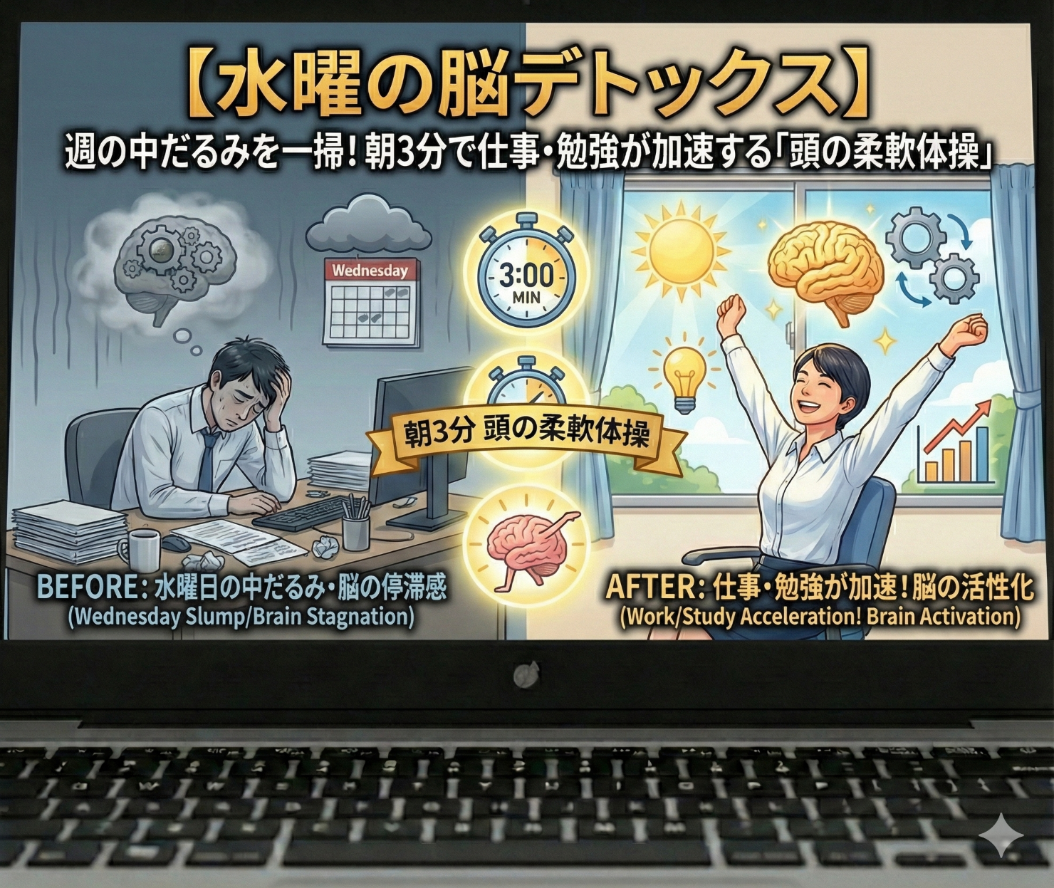 【水曜の脳デトックス】週の中だるみを一掃!朝3分で仕事・勉強が加速する「頭の柔軟体操」