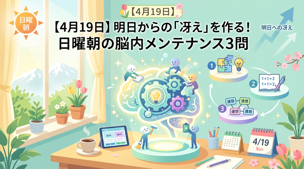 【4月19日】明日からの「冴え」を作る!日曜朝の脳内メンテナンス3問