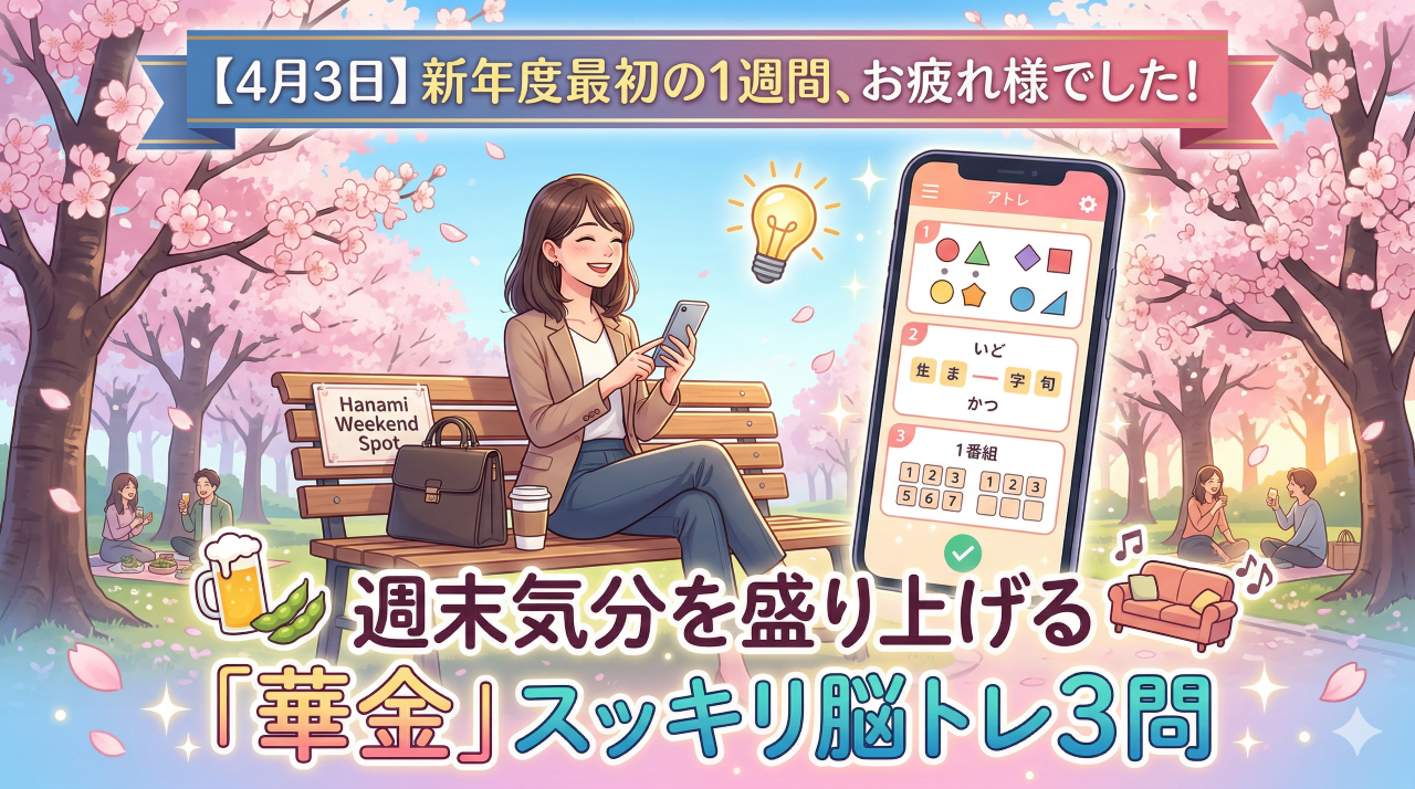 【4月3日】新年度最初の1週間、お疲れ様でした!週末気分を盛り上げる「華金」スッキリ脳トレ3問