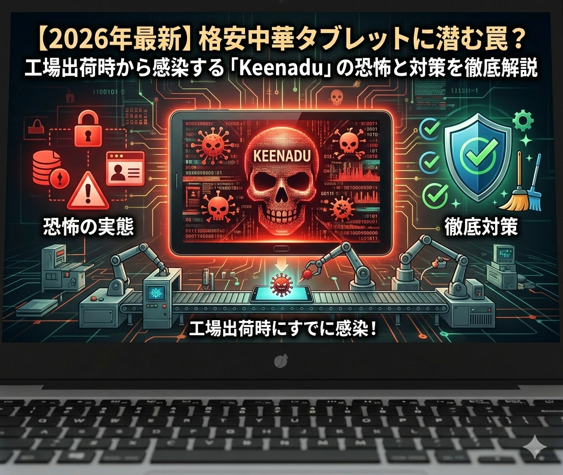 - 結論(Point): 一部の格安中華製Androidデバイスには、工場で作られる段階で「Keenadu(キーナドゥ)」と呼ばれる悪質なウイルス(バックドア)が仕込まれています。