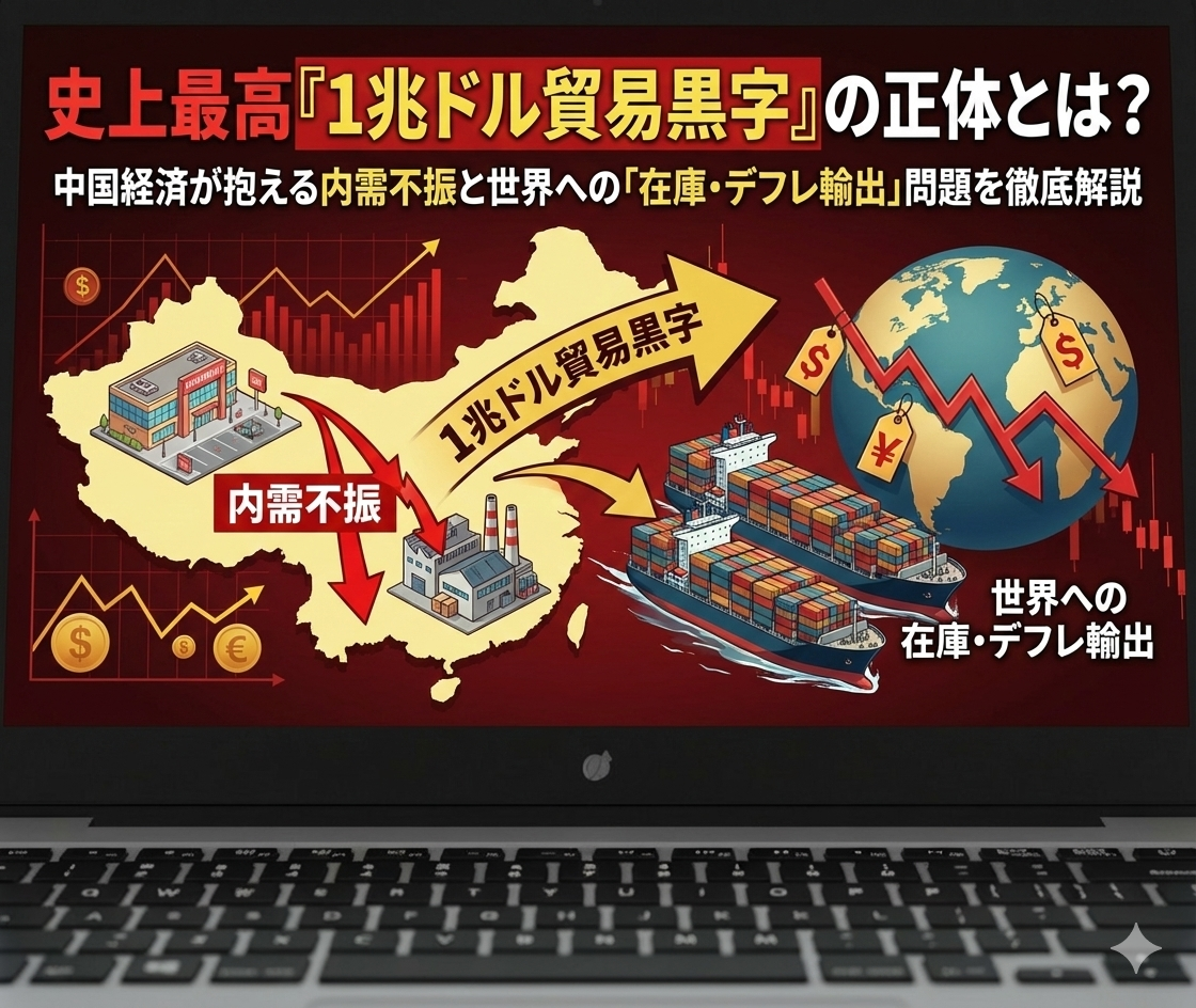 「1兆ドルの貿易黒字」は、中国経済の成功ではなく、国内の構造的な歪みが限界に達し、外へ溢れ出しているアラート信号です。不動産不況による内需の欠落を、輸出という「排泄」で補おうとするモデルは、世界各国との摩擦を生み続け、持続可能ではありません。