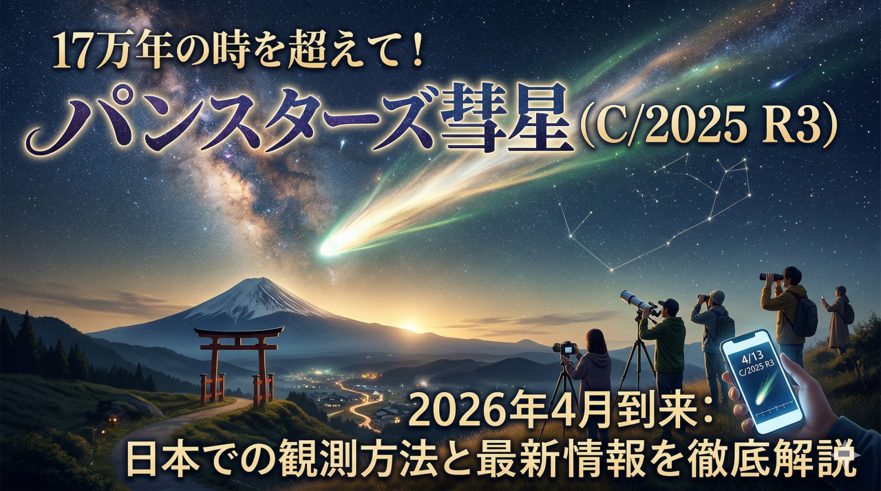 2026年4月、私たちの頭上の夜空に、一生に一度出会えるかどうかの特別な天体が姿を現しています。それは、気の遠くなるような長い年月をかけて太陽系の果てからやってきた「パンスターズ彗星(C/2025 R3)」です。「最近、明け方の空に明るい星が見えるらしいけど、どうやって見ればいいの?」と気になっている方も多いのではないでしょうか。この彗星は、今この瞬間を逃すと二度と目にすることができない、まさに「宇宙からの一期一会」の贈り物なのです。