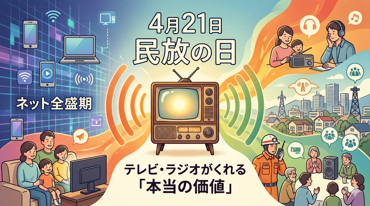 「最近、テレビよりYouTubeやSNSを見ている時間の方が長いな」と感じることはありませんか?スマートフォン一つで好きな時に好きな動画が見られる現代において、決まった時間に番組が流れる「放送」という形は、一見すると少し古く感じられるかもしれません。しかし、毎年4月21日の「民放の日」は、私たちが当たり前のように無料で楽しんでいるエンターテインメントの原点を見つめ直す大切な日です。なぜ、これほどまでに選択肢が増えた2026年の今でも、私たちはテレビやラジオを切り離せないのでしょうか。そこには、デジタル技術だけでは埋められない、人間らしい「つながり」の秘密が隠されています。