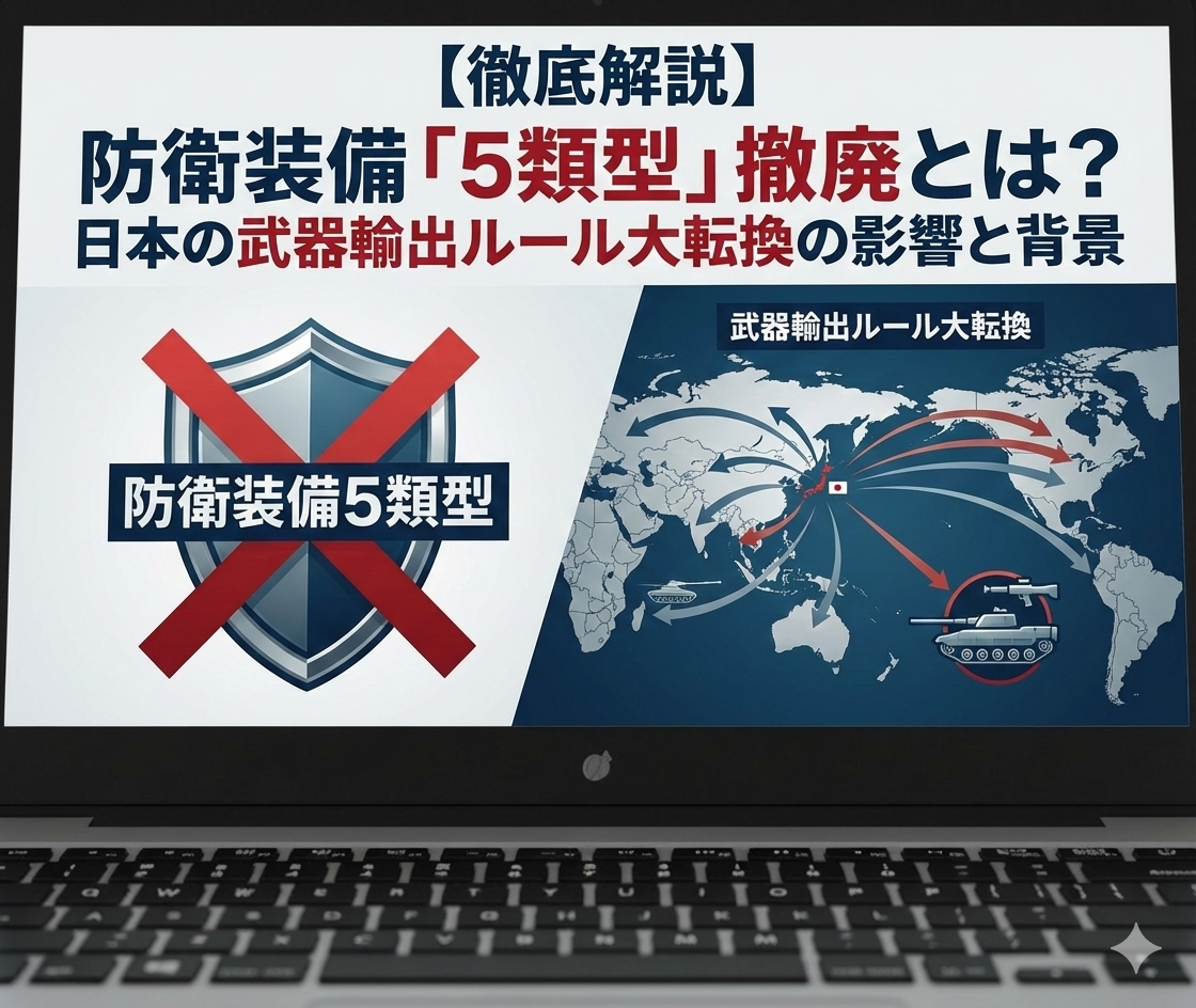 防衛装備の「5類型撤廃」は、戦後の日本の安全保障政策を根本から変える極めて重要なトピックです。