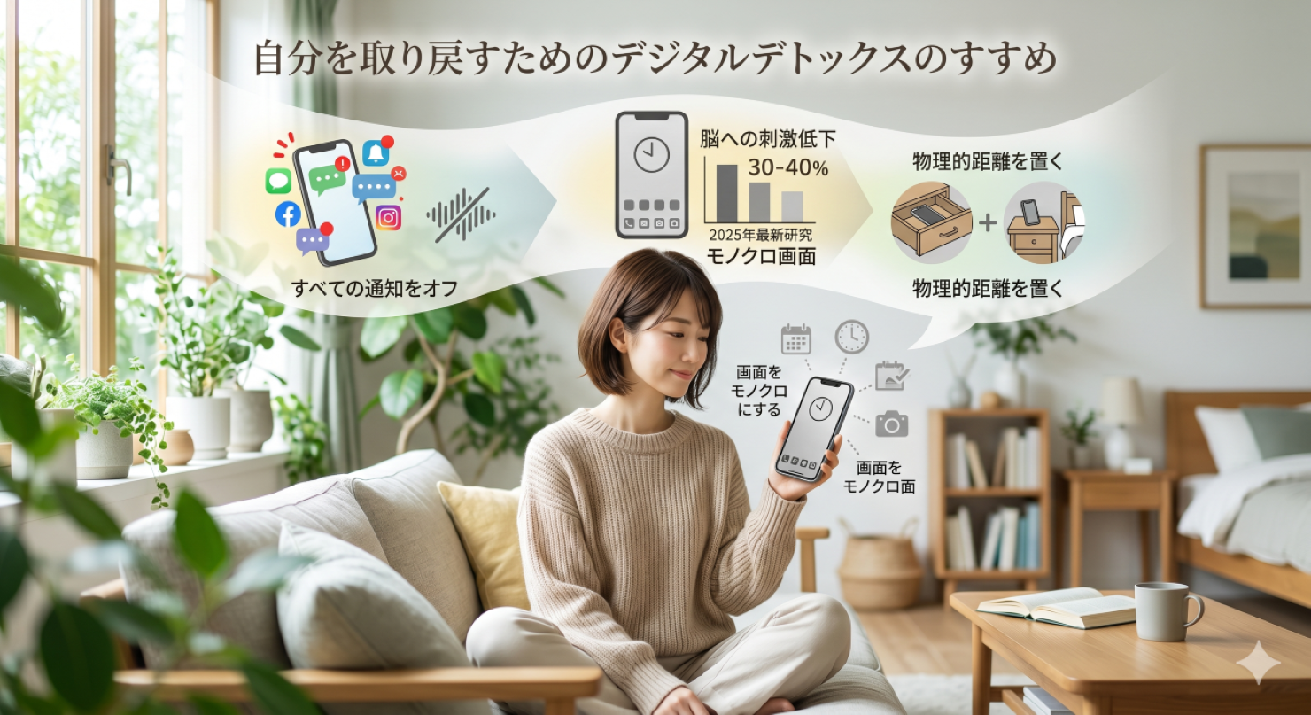 デジタルデバイスと健全に付き合うためには、単なる「意志の力」だけでなく、環境を整える「デジタルデトックス」を実践することが非常に効果的です。以下に、今日から始められる具体的な方法をいくつかご紹介します。