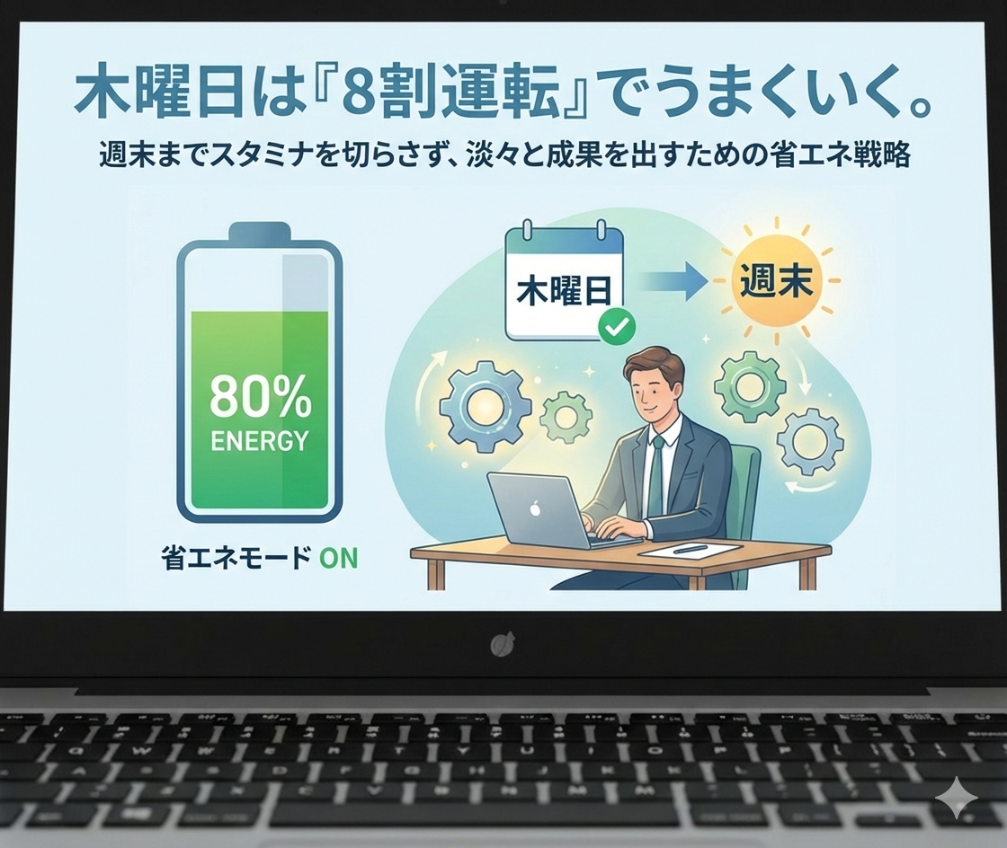 木曜日は『8割運転』でうまくいく。週末までスタミナを切らさず、淡々と成果を出すための省エネ戦略