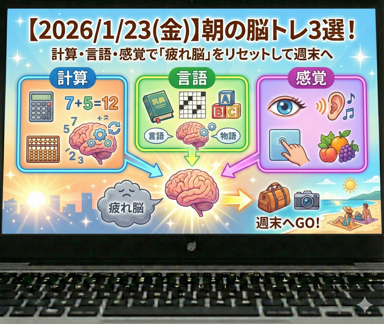 【2026/1/23】金曜朝の脳トレ3選!計算・言語・感覚で「疲れ脳」をリセットして週末へ