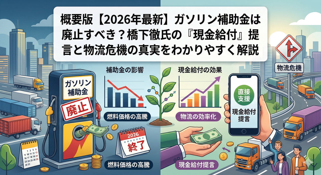 この記事では、橋下氏の提言の裏にある「経済学的な正しさ」をわかりやすく解説しつつ、それが現実社会に持ち込まれた時に生じる「ヤバい副作用(物流の停滞や不況の連鎖)」について、プロの視点から徹底的に紐解いていきます。