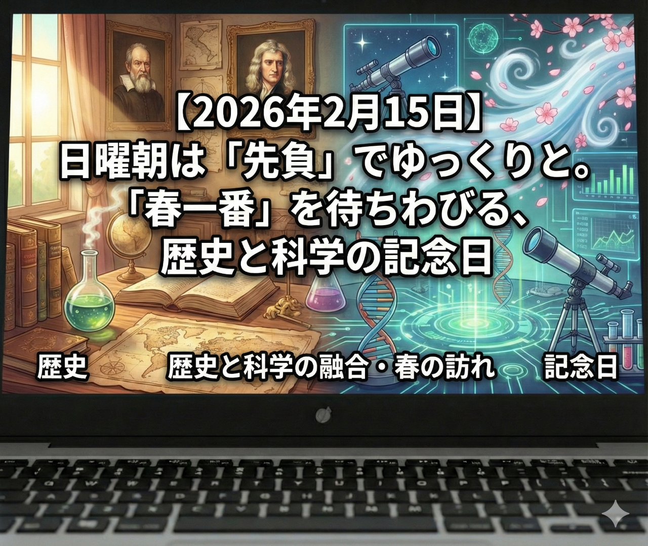 今日は何の日?【2026年2月15日】日曜朝は「先負」でゆっくりと。「春一番」を待ちわびる、歴史と科学の記念日