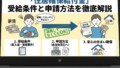 - 退職日までに被保険者期間が継続して1年以上あること: 転職したばかり(加入1年未満)だと、退職後は貰えません(在職中は貰えます)。