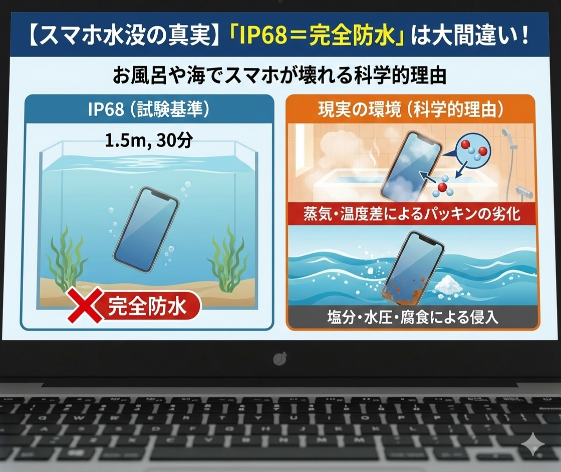 【スマホ水没の真実】「IP68=完全防水」は大間違い!お風呂や海でスマホが壊れる科学的理由