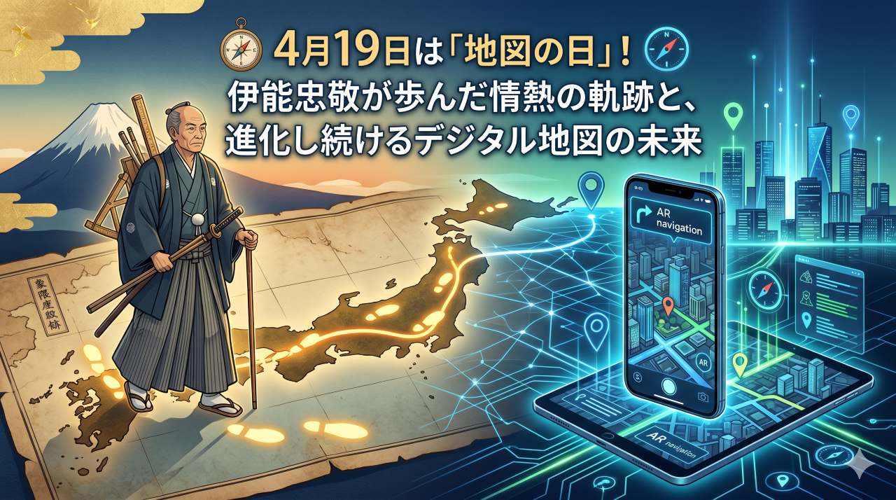 スマートフォンを開けば、自分の現在地が正確に分かり、目的地までの最短ルートを瞬時に教えてくれる現代。私たちは当たり前のように「地図」の恩恵を受けていますが、かつて日本に正確な地図がなかった時代、自分の足だけで日本全土を測量した人物がいたことをご存知でしょうか。4月19日は、その偉業の第一歩が刻まれた「地図の日」です。一枚の地図を作るために注がれた情熱は、現代のデジタル技術と結びつき、私たちの生活をさらに豊かに変えようとしています。