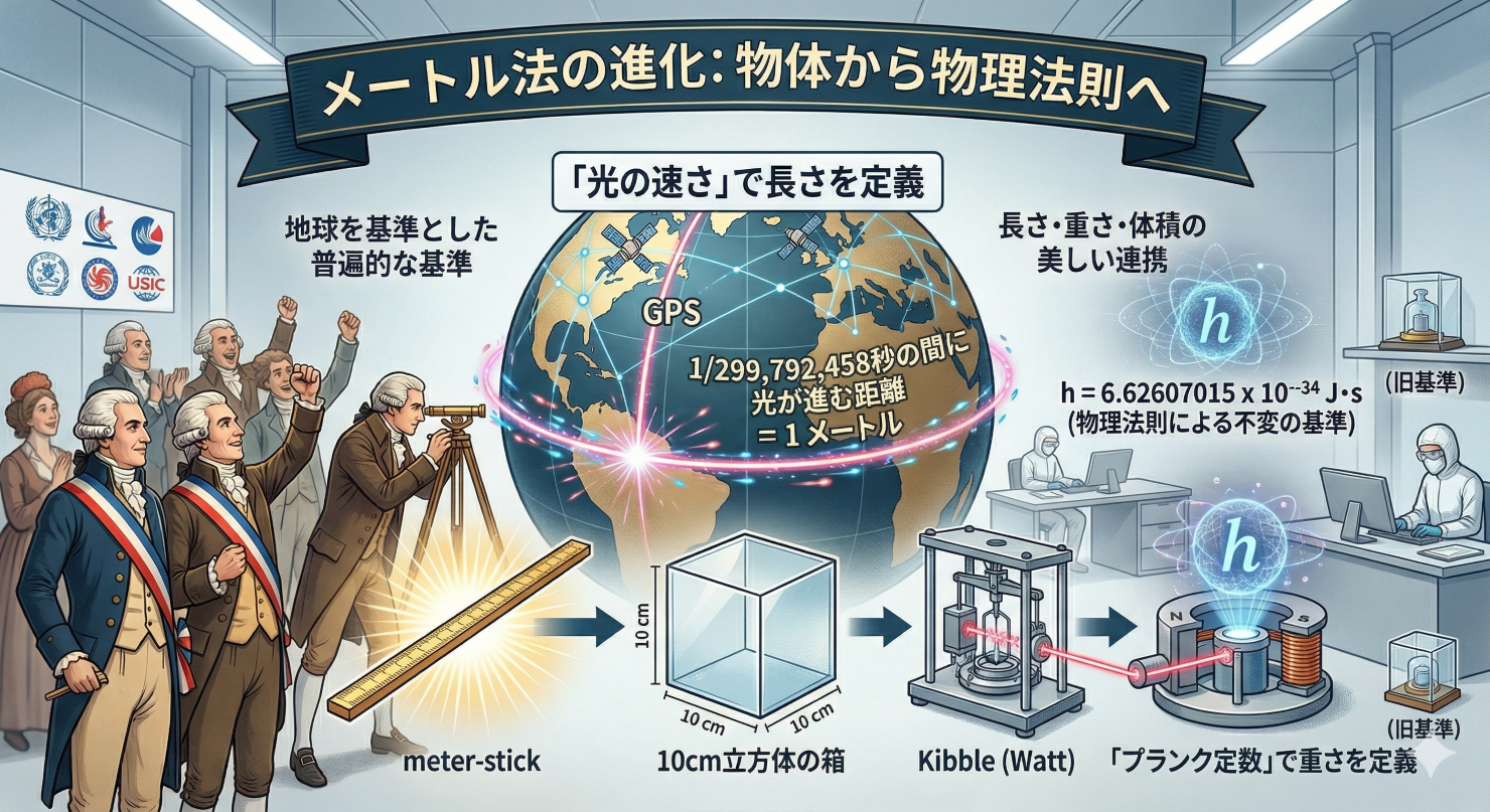 現在では、長さも重さも、人間の作った「物体」を基準にするのではなく、宇宙の永遠のルールである「光」や「物理の法則」を基準にする時代に進化しています。私たちが使っている単位の裏には、人類の知恵と科学の最先端の技術が詰まっているのです。