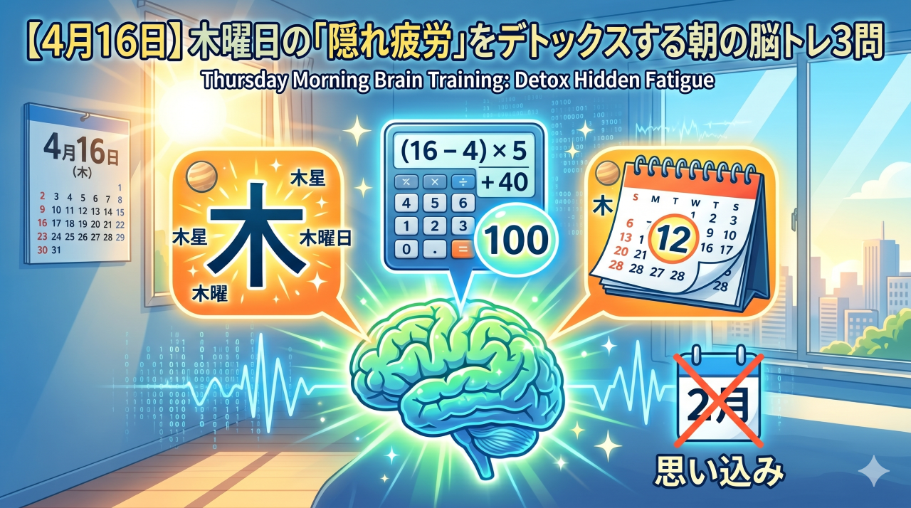 【4月16日】週末まであと一息!木曜日の「隠れ疲労」をデトックスする朝の脳トレ3問