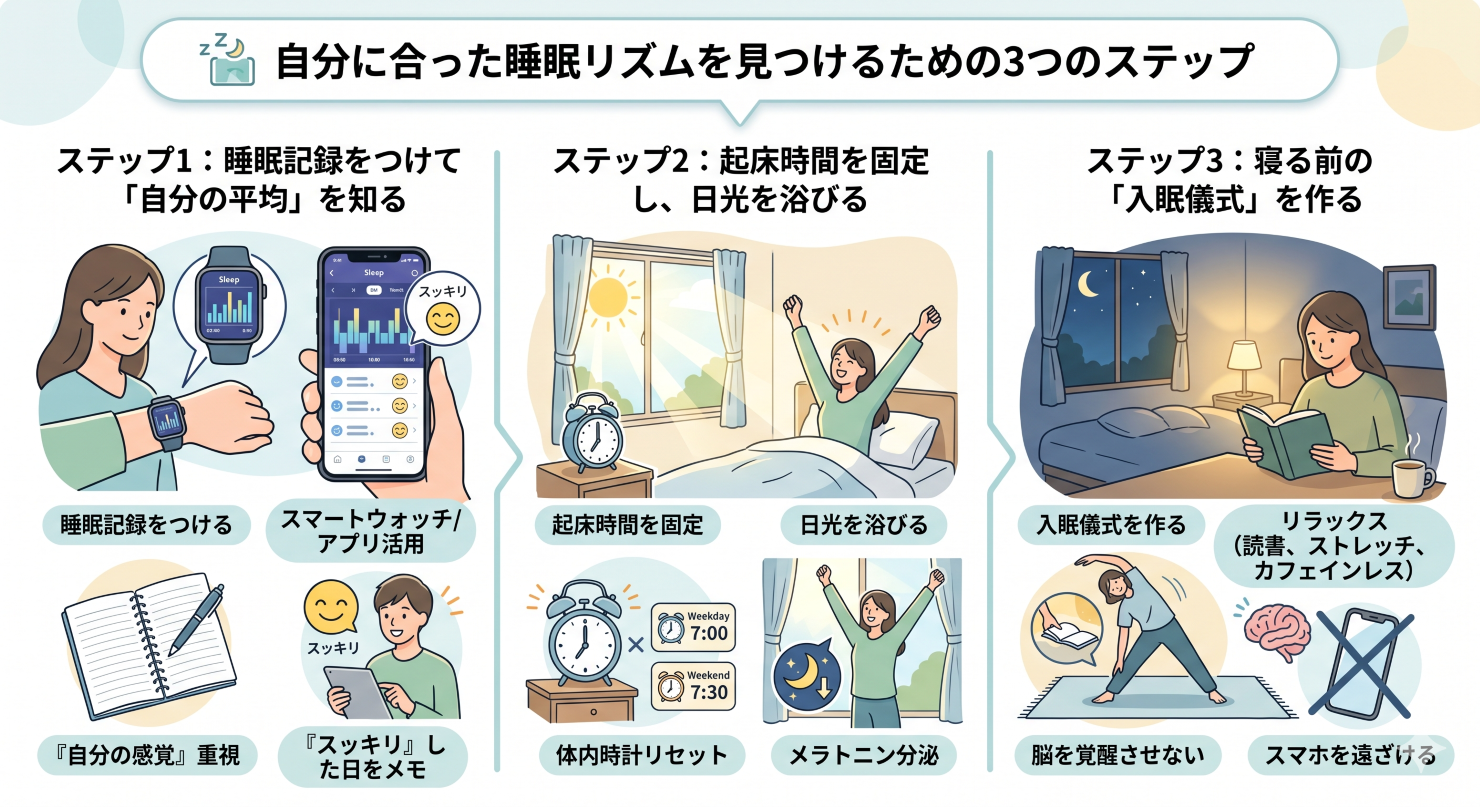 自分に合った睡眠リズムを見つけるための3つのステップ
