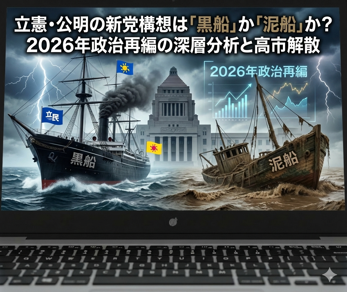 本レポートは、自公連立崩壊と「自民・維新」ブロックの形成、それに対抗する立憲民主党・公明党の「新党構想」という前代未聞の政治再編の力学を分析します。かつて水と油とされた両党の接近は、日本政治に二大政党制を強制する「黒船」となるのか、それとも理念なき野合として沈没する「泥船」となるのかを検証します。