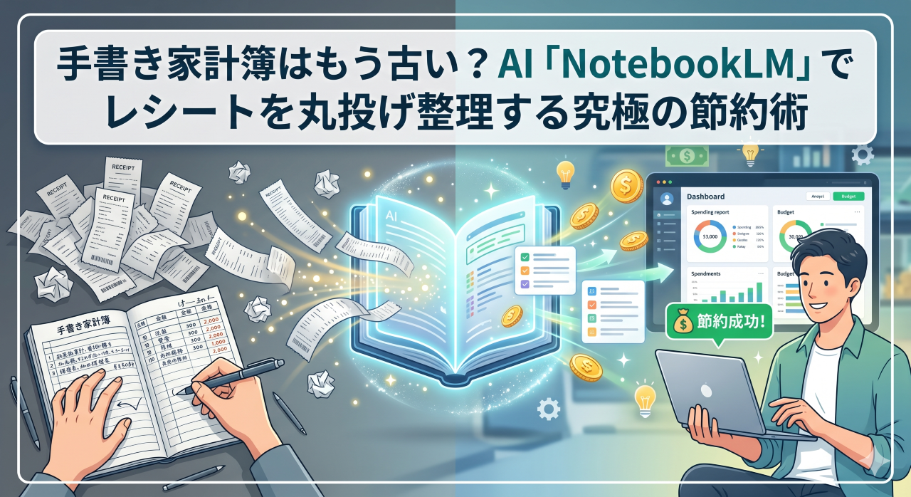 「今年こそは家計簿をつけよう!」と決意したものの、溜まっていくレシートを見てため息をつき、結局三日坊主で終わってしまった……。そんな経験はありませんか?家計の管理が大切なのは分かっていても、毎日の支出を細かく記録するのは本当に大変な作業ですよね。しかし、今話題のGoogleのAIツール「NotebookLM」を使えば、その面倒な作業をすべてAIに丸投げできる「未来の家計簿術」が実現します。
