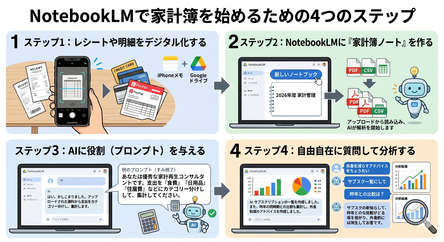 NotebookLMで家計簿を始めるための4つのステップ