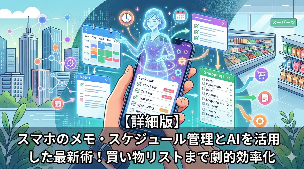 「毎日やることが多くてスケジュール管理がうまくいかない」「買い物メモを書いても、結局スーパーで買い忘れをしてしまう…」そんな悩みはありませんか?スマホが手放せない現代、私たちの生活を劇的に楽にしてくれるAIを活用した新しい管理術が注目されています。