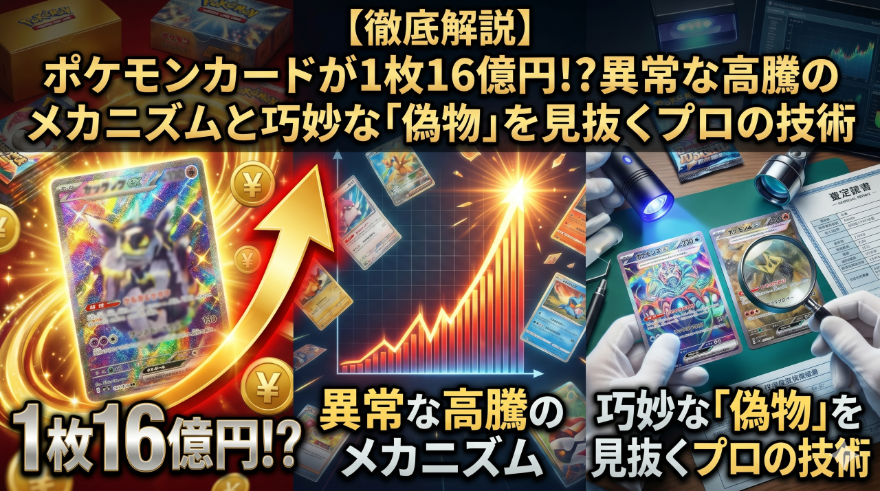 ポケモンカード市場は、かつての「遊び」の枠を完全に超え、世界的な「金融資産」へと進化しました。1枚のカードが16億円で取引される時代の到来は、夢がある一方で、巧妙な犯罪者たちを呼び寄せる結果にもなっています。7.6トンもの偽物が摘発され、鑑定ケースすらハッキングされる今、「本物だと信じ込む」ことこそが最大の極大リスクです。