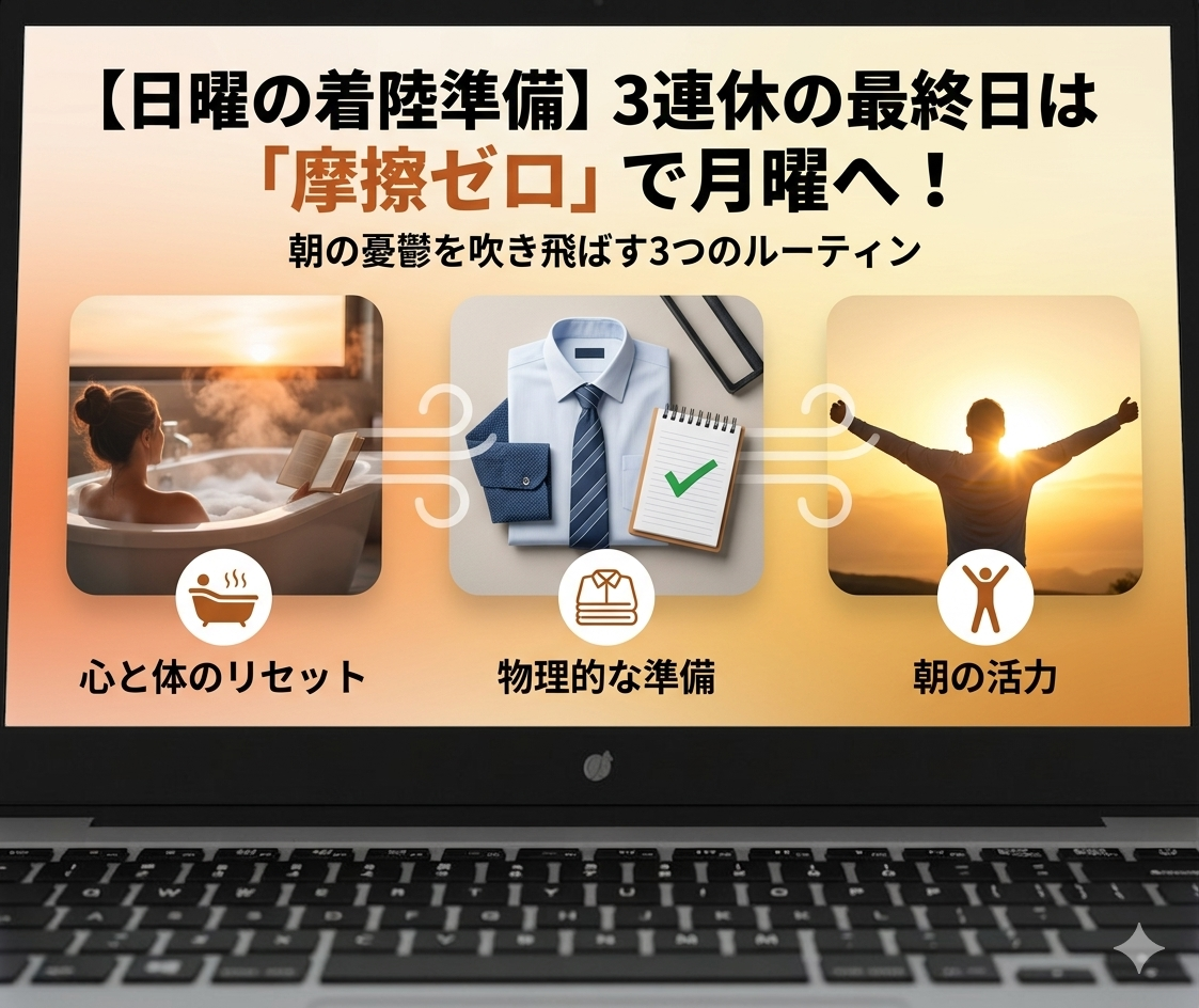 【日曜の着陸準備】3連休の最終日は「摩擦ゼロ」で月曜へ!朝の憂鬱を吹き飛ばす3つのルーティン