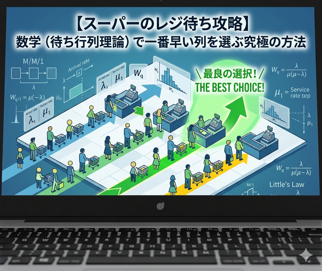 本記事では、日常のあらゆる「待ち時間」を科学的に分析する「待ち行列理論(まちぎょうれつりろん)」などの統計学の基礎を応用し、スーパーのレジで最も早く進む列を見極める究極の法則を、専門用語を使わずにわかりやすく解説します。