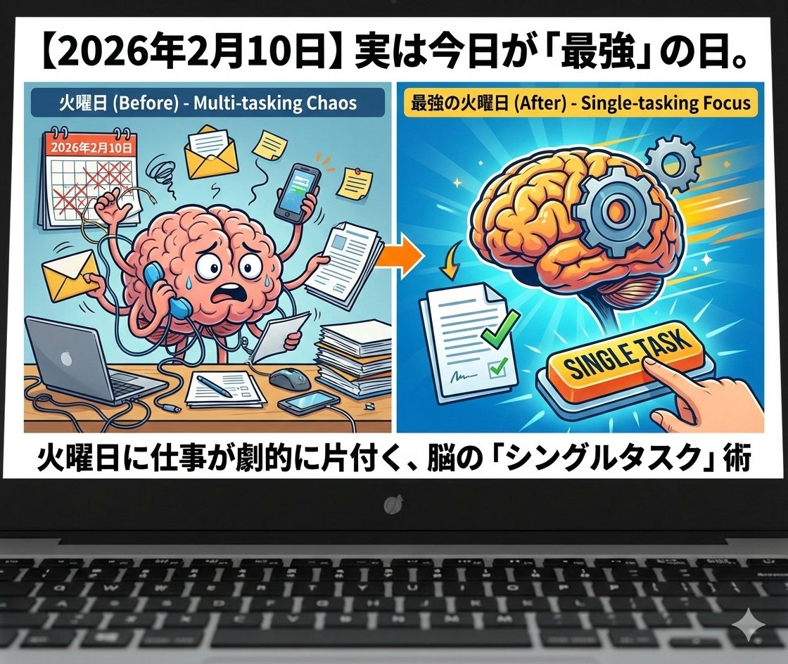 【2026年2月10日】実は今日が「最強」の日。火曜日に仕事が劇的に片付く、脳の「シングルタスク」術