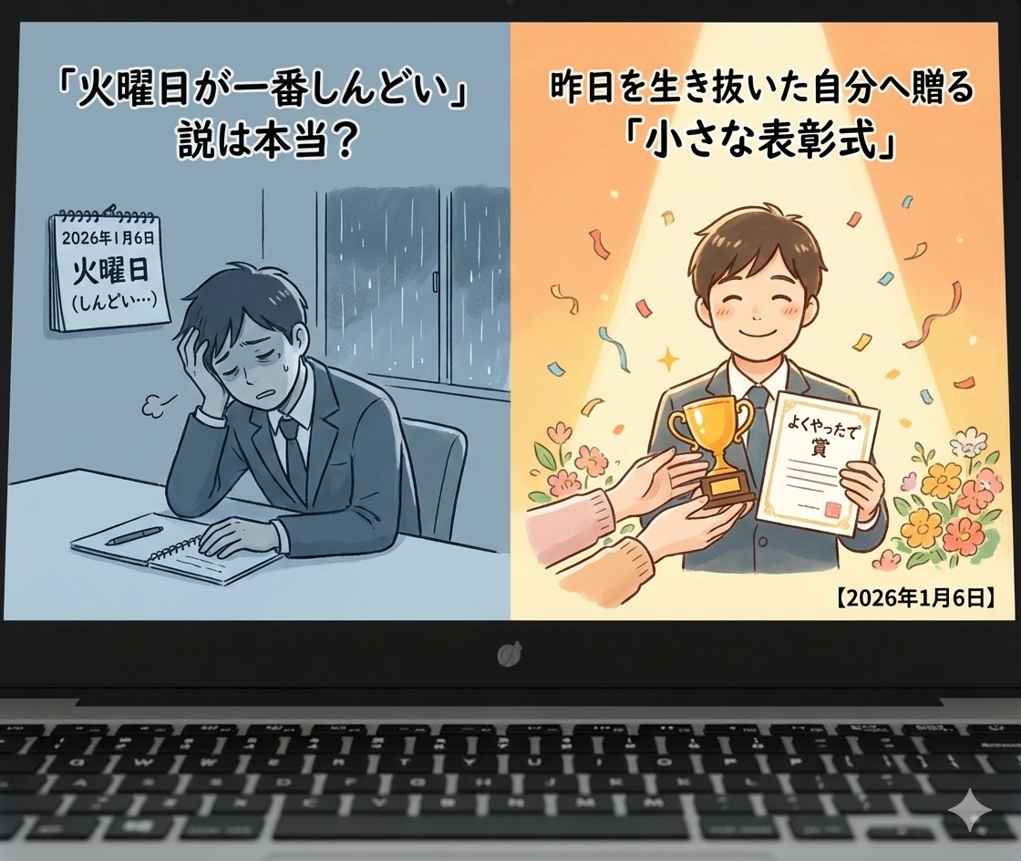 「火曜日が一番しんどい」説は本当?昨日を生き抜いた自分へ贈る「小さな表彰式」【2026年1月6日】