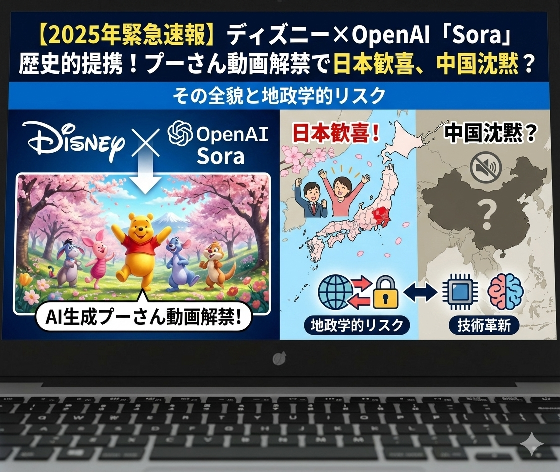 【2025年緊急速報】ディズニーがOpenAI「Sora」と歴史的提携!プーさん動画解禁で日本歓喜、中国は沈黙?その全貌と地政学的リスク