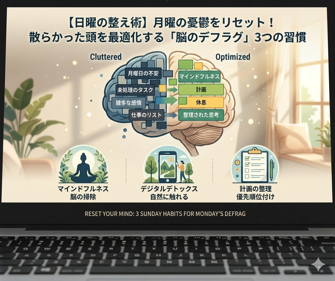【日曜の整え術】月曜の憂鬱をリセット!散らかった頭を最適化する「脳のデフラグ」3つの習慣