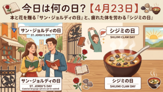 How To 今日は何の日?【4月23日】本と花を贈る「サン・ジョルディの日」と、疲れた体を労わる「シジミの日」 【4月23日は何の日?】本と花を贈る「サン・ジョルディの日」と、疲れた体を労わる「シジミの日」新年度4週目の木曜日。週末まであと一息ですが、そろそろ新しい環境での疲れがピークに達してくる頃ではないでしょうか。本日は2026年4月23日(木曜... 2026.04.23 How Toお悩み元気・やる気が出るお話生活社会