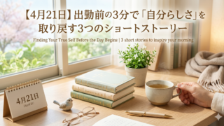 How To 【4月21日】出勤前の3分で「自分らしさ」を取り戻す3つのショートストーリー 概要:疲れが溜まる第4週目は「自分の価値」を再確認するタイミング「毎日ギリギリでこなしているけれど、これで正解なのか分からない」「周りの環境や人間関係のストレスに押しつぶされそうになる」「自分の仕事が本当に役に立っているのか自信が持てない」... 2026.04.21 How Toお悩み元気・やる気が出るお話生活社会