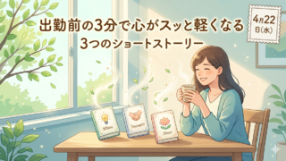 How To 【4月22日】出勤前の3分で心がスッと軽くなる「3つのショートストーリー」 概要:連休目前の「息切れ水曜日」は、心のエネルギーを温存する「ゴールデンウィークまであと少しなのに、ここに来てガス欠気味だ」「目の前の業務に追われて、なんだか心がすり減っている気がする」「ミスを引きずって、無駄に疲れてしまう」。4月22日、... 2026.04.22 How Toお悩み元気・やる気が出るお話生活社会