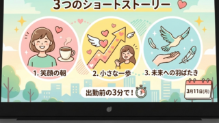 How To 【3月11日】週の折り返しに!出勤前の3分で心が上を向く「3つのショートストーリー」 【3月11日】週の折り返しに!出勤前の3分で心が上を向く「3つのショートストーリー」概要:水曜日の「心のブレーキ」を外す知恵「毎日同じことの繰り返しで、自分が成長していない気がする」「大きな壁を前にして、自分一人の無力さを感じる」「失敗が怖... 2026.03.11 How Toお悩み元気・やる気が出るお話生活社会