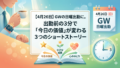 How To 今日は何の日?【4月25日】感謝とご褒美の「初任給の日」と、愛らしい姿に癒やされる「世界ペンギンデー」 【4月25日は何の日?】感謝とご褒美の「初任給の日」と、愛らしい姿に癒やされる「世界ペンギンデー」新年度が始まって4週目の週末。いよいよ来週からはゴールデンウィークという方も多いのではないでしょうか。毎日のお仕事や学校、本当にお疲れ様でした... 2026.04.25 How Toお悩み元気・やる気が出るお話生活社会