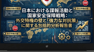 How To 【スパイ】日本における諜報活動と国家安全保障戦略:外交特権の壁と「強力な対抗策」に関する包括的分析報告書 日本における諜報活動と国家安全保障戦略:外交特権の壁と「強力な対抗策」に関する包括的分析報告書序論:東アジアの安全保障環境と「スパイ天国」の汚名1.1 変容する脅威のランドスケープ:中国・ロシアによるインテリジェンス攻勢21世紀の東アジアに... 2026.01.21 How Toお悩み生活社会