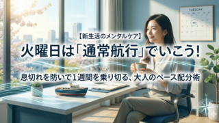 【新生活のメンタルケア】火曜日は「通常航行」でいこう!息切れを防いで1週間を乗り切る、大人のペース配分術
