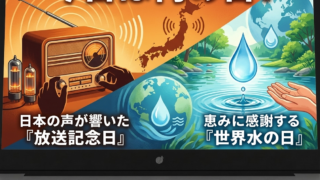 How To 今日は何の日?日本の声が響いた「放送記念日」と、恵みに感謝する「世界水の日」 【3月22日は何の日?】日本の声が響いた「放送記念日」と、恵みに感謝する「世界水の日」楽しかった3連休も、あっという間に最終日ですね。本日は2026年3月22日(日曜日)です。本日の六曜は仏滅(ぶつめつ)。「物が滅する日」としてお祝い事を避... 2026.03.22 How Toお悩み元気・やる気が出るお話生活社会