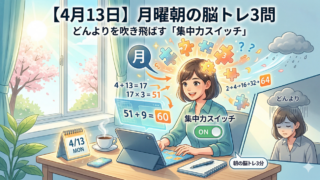 【4月13日】第2週目のスタート!月曜朝のどんよりを吹き飛ばす「集中力スイッチ」脳トレ3問