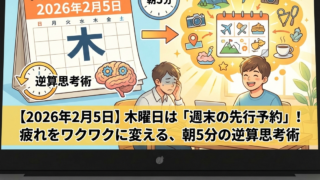 【2026年2月5日】木曜日は「週末の先行予約」!疲れをワクワクに変える、朝5分の逆算思考術