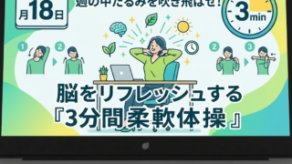 How To 【3月18日】週の中だるみを吹き飛ばせ!脳をリフレッシュする「3分間柔軟体操」 【3月18日】週の中だるみを吹き飛ばせ!脳をリフレッシュする「3分間柔軟体操」おはようございます!2026年3月18日、水曜日の朝ですね。全国の社会人や学生の皆さん、週の折り返し地点までやってきました!少しずつ疲れが溜まって「なんだか集中力... 2026.03.18 How Toお悩み元気・やる気が出るお話生活社会