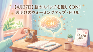 How To 【4月27日】脳のスイッチを優しくON!週明けのウォーミングアップ・ドリル おはようございます!月曜日の朝、まだ眠気が残っている脳に新鮮な刺激を送り届けましょう。今日は、言葉の想起、計算、そしてちょっとした「ひらめき」を試す3問をご用意しました。スロースターターで大丈夫。まずはこの3問を解いて、脳の血流量をアップさ... 2026.04.27 How Toお悩み元気・やる気が出るお話生活社会