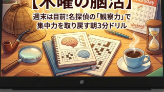 【木曜の脳活】週末は目前!名探偵の「観察力」で集中力を取り戻す朝3分ドリル